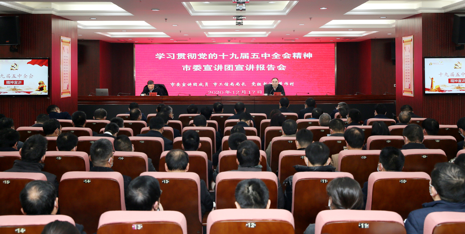 根據(jù)市委統(tǒng)一部署,12月17日,市委宣講團(tuán)來(lái)集團(tuán)開展黨的十九屆五中全會(huì)精神宣講活動(dòng)。市委宣講團(tuán)成員、工信局局長(zhǎng)、黨組書記董作村作宣講報(bào)告。集團(tuán)公司黨委書記、董事長(zhǎng)楊龍主持宣講報(bào)告會(huì)。