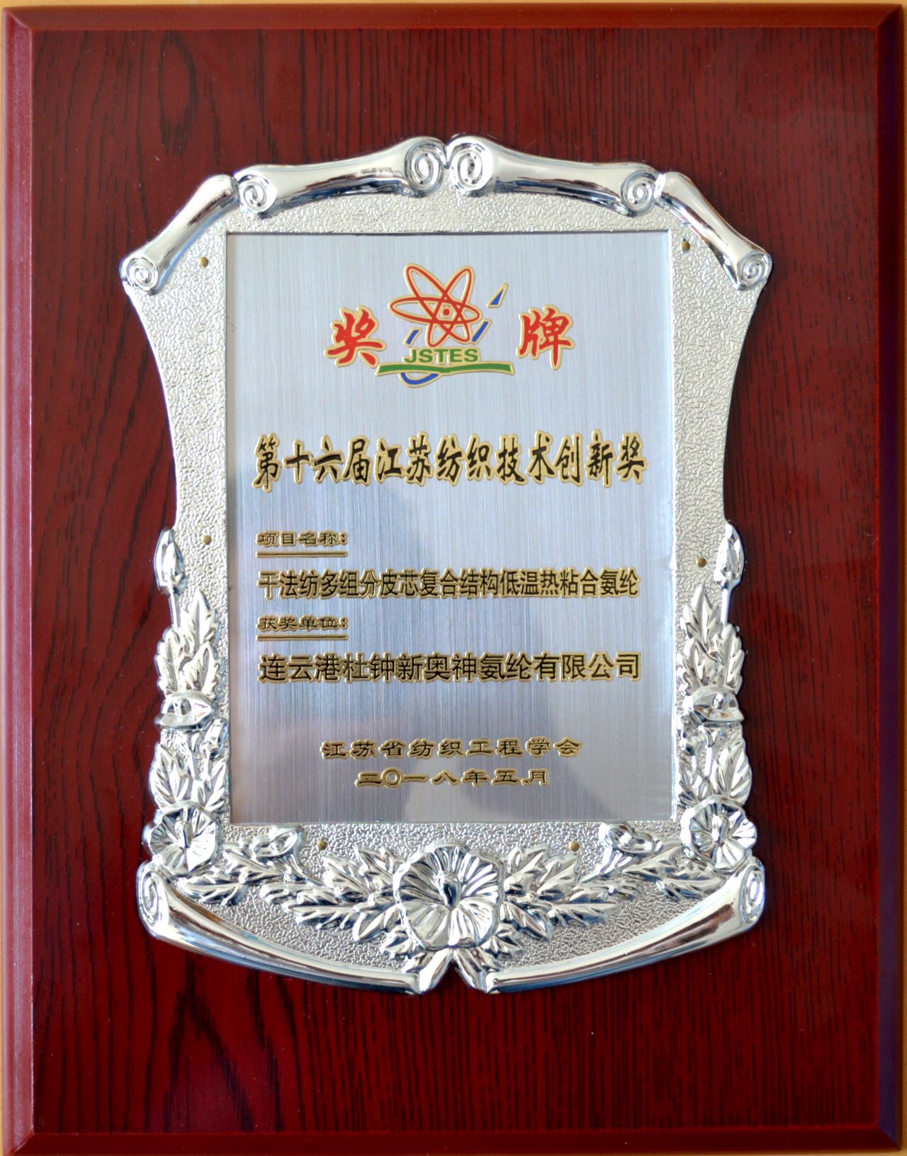 5月30日,江蘇省紡織工程學會第十一屆會員代表大會暨“中孚達杯”紡織學術年會在江蘇南京順利舉行。我公司“干法紡多組分皮芯復合結構低溫熱粘合氨綸”獲得第十六屆江蘇省紡織技術創(chuàng)新獎,并在會議現(xiàn)場以展板形式隆重展出。