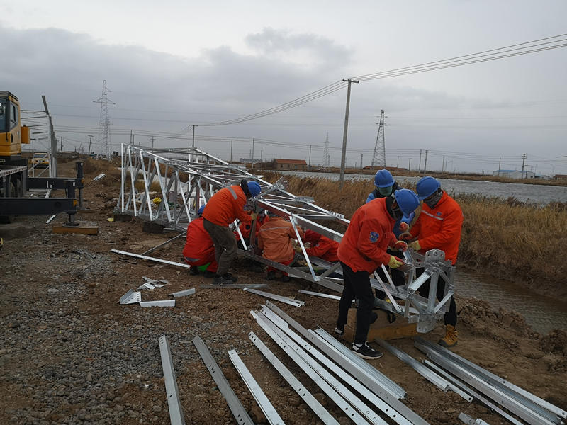 施工前,隊長孫迎照就特別強調大風天氣要注意安全,嚴禁爬高上高,并根據(jù)天氣狀況及時改變了施工方案,將暫時不吊裝鐵塔改為分兩段在地面組裝鐵塔,有效避免了大風對工作帶來的安全隱患。