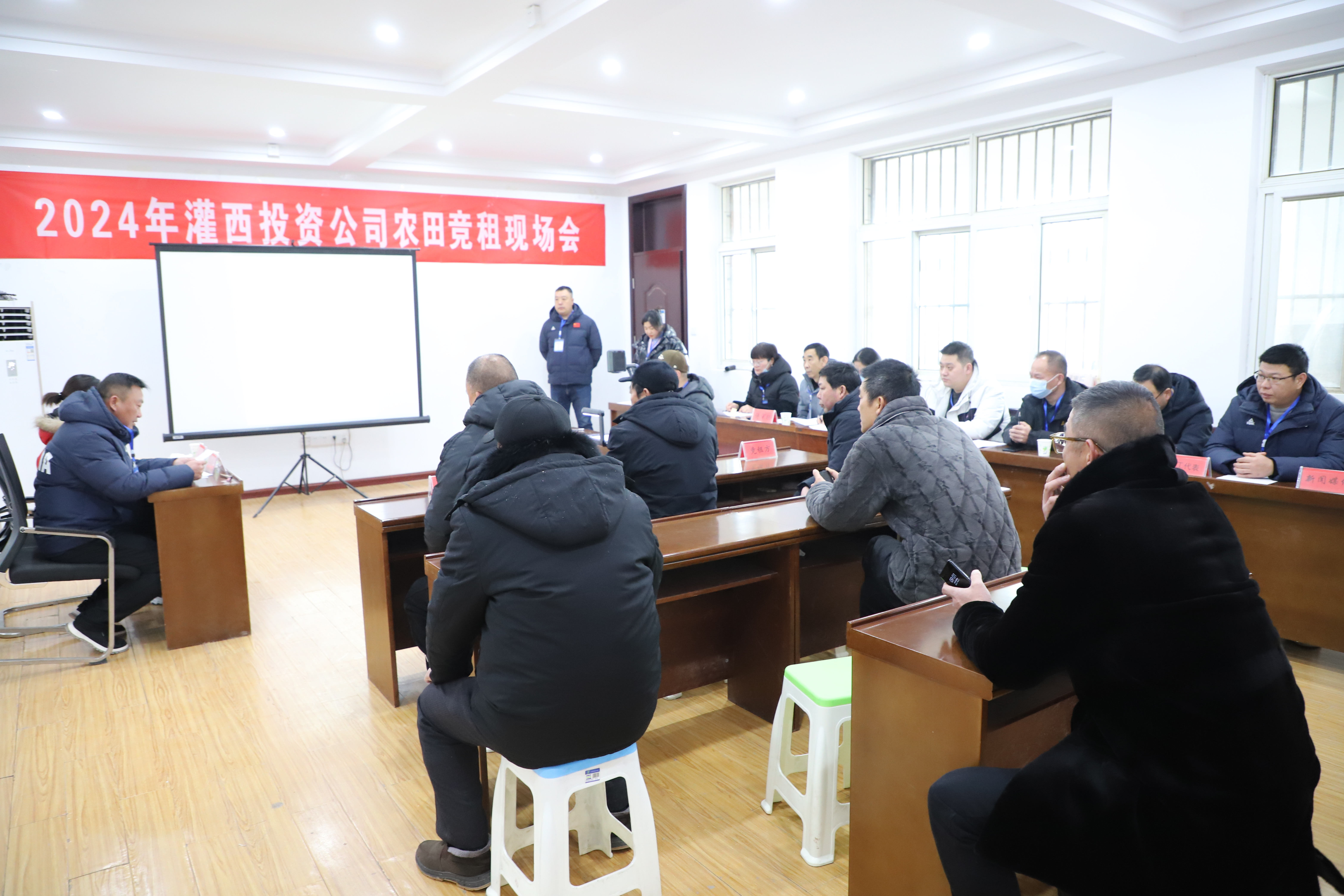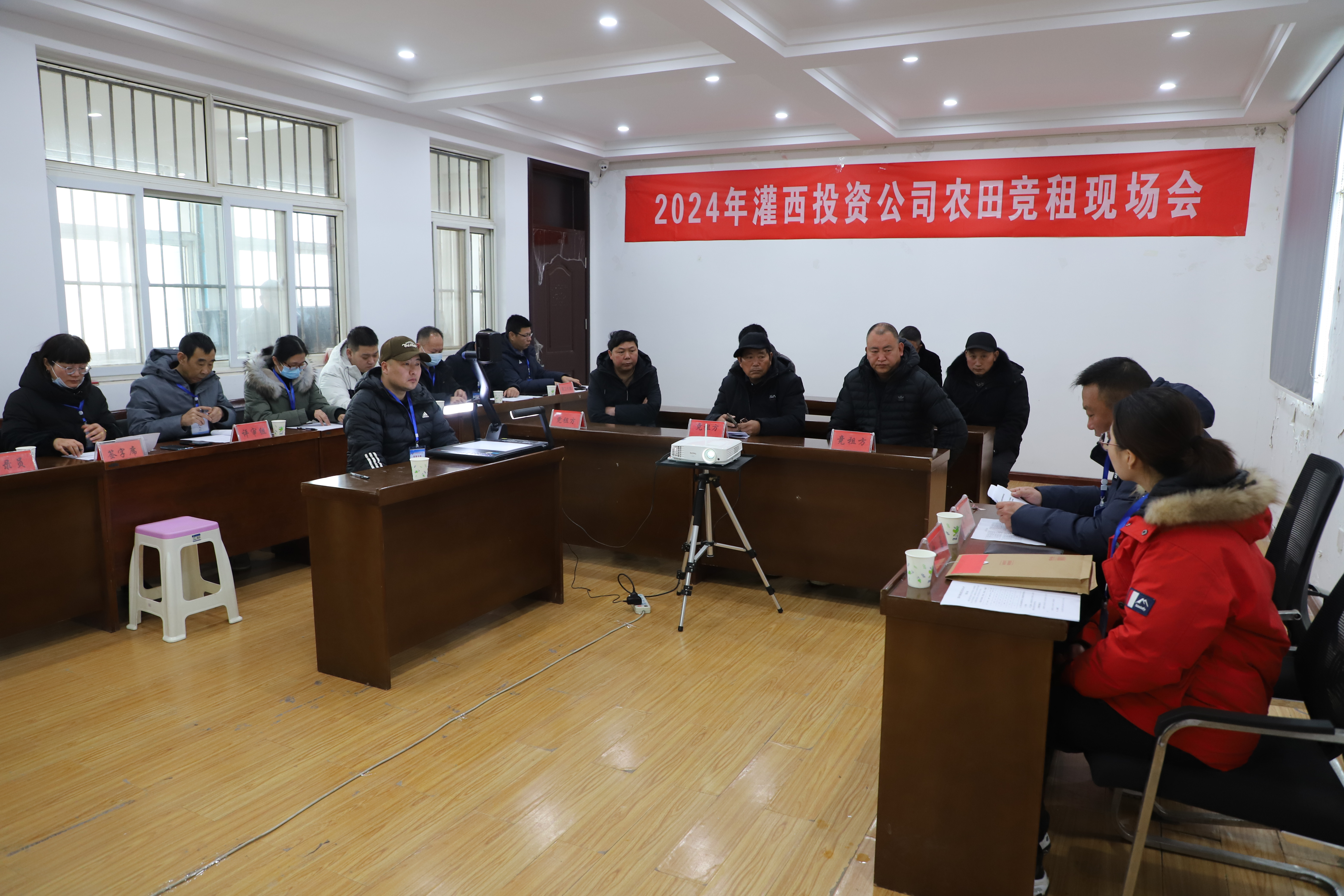 229日,灌西投資公司舉辦2024年農田發包競租現場會,對4個標段近2000畝到期農田進行了公開租賃,參與競租的種植戶達30余人。此次農田競租,畝均價格比底價提高了100多元,取得了圓滿成功。