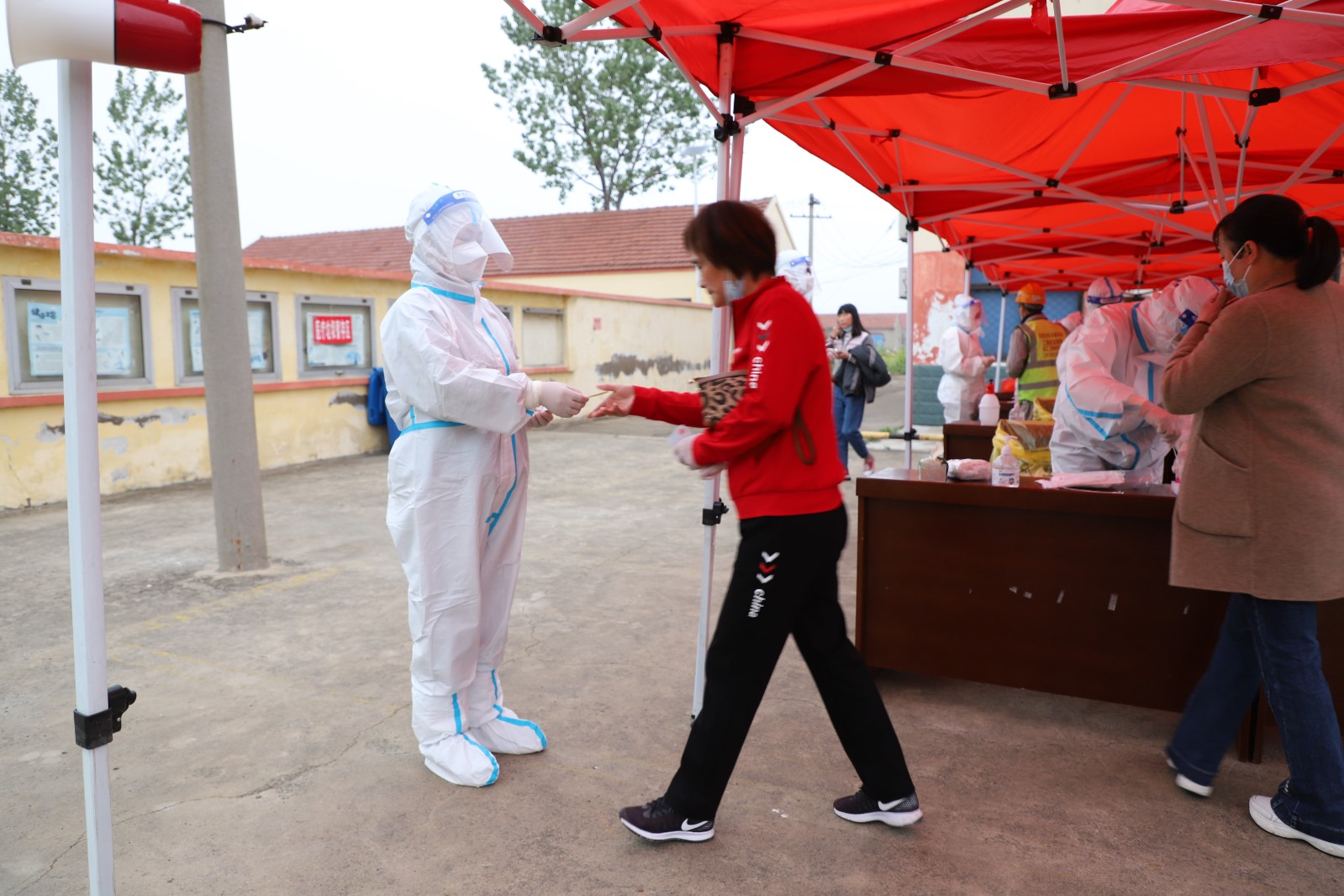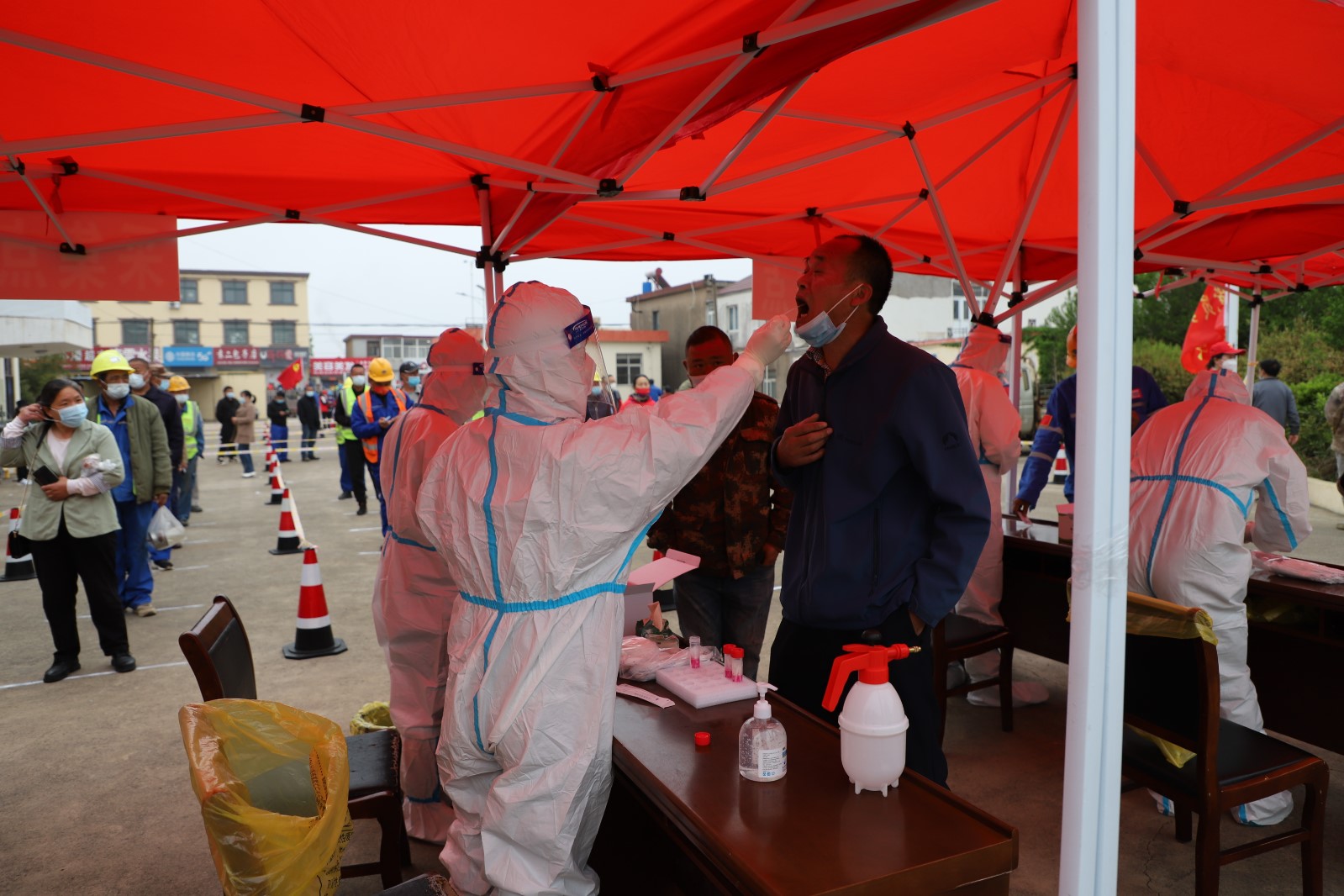 為了配合做好這一輪的全民核酸檢測工作,從核酸檢測前期的場地準備到居民隊伍的秩序維持,從協助醫護人員做好消毒、信息錄入到現場管理,灌西投資公司廣大志愿者奮勇上前,全過程參與其中。由于之前天氣有雨,早在凌晨3點多鐘,公司志愿者們就來到現場部署核酸檢測場地,及時做好設置隔離區,劃出一米線等工作,確保了早上5點半點準時開始檢測。