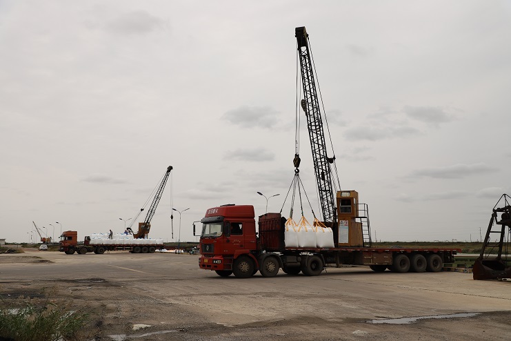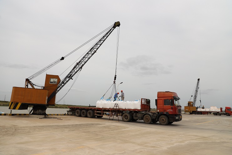 這兩天,家家戶戶都在享受著雙節(jié)來(lái)臨的喜悅,然而來(lái)自宵洋物流公司五灌河碼頭的全體員工卻沒有閑著。十月三日,天氣稍有好轉(zhuǎn),碼頭上就瞬間忙碌起來(lái),裝運(yùn)噸袋的車輛來(lái)來(lái)回回、一輛接著一輛。工人們也按照事先分配好的工作任務(wù)有條不紊的進(jìn)行著掛鉤、轉(zhuǎn)運(yùn)、解勾等工作流程,讓每一包噸袋都準(zhǔn)確無(wú)誤的碼放在船艙內(nèi)。