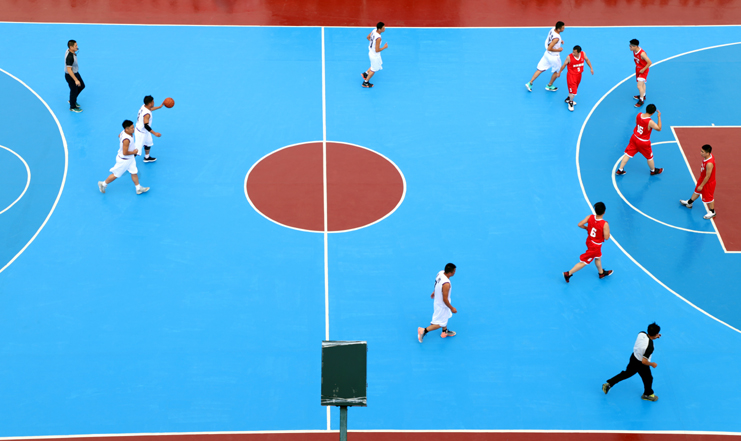 9月15日上午,灌西賽區,開幕式結束后的揭幕戰由灌西代表隊跟神特代表隊對戰,伴隨著哨聲的響起,現場的氣氛急劇攀升,雙方很快進入了激烈的角逐。雙方的拉拉隊員也奮力加油,最讓人印象深刻的是灌西12號球員王超,一米92的大高個,不管是對手在進攻還是隊友在進攻,整場的籃板球都在他的控制之下。身著98號球衣的灌西球員陸應兵在球場上如同一道白色閃光,快攻、長傳、高長傳、遠投,將比賽的節奏迅速帶動起來,奮力進球。而身著紅色球衣的神特隊堅持穩打穩扎的戰術,很好地控制住了比賽局面,神特15號隊員孫輝在防守嚴密的灌西隊的控制下,連連遠投進球,使比分一直緊追灌西,可惜他一個人的力量不足以挽救局面,最終以40比89分的大比分落差敗給灌西隊。