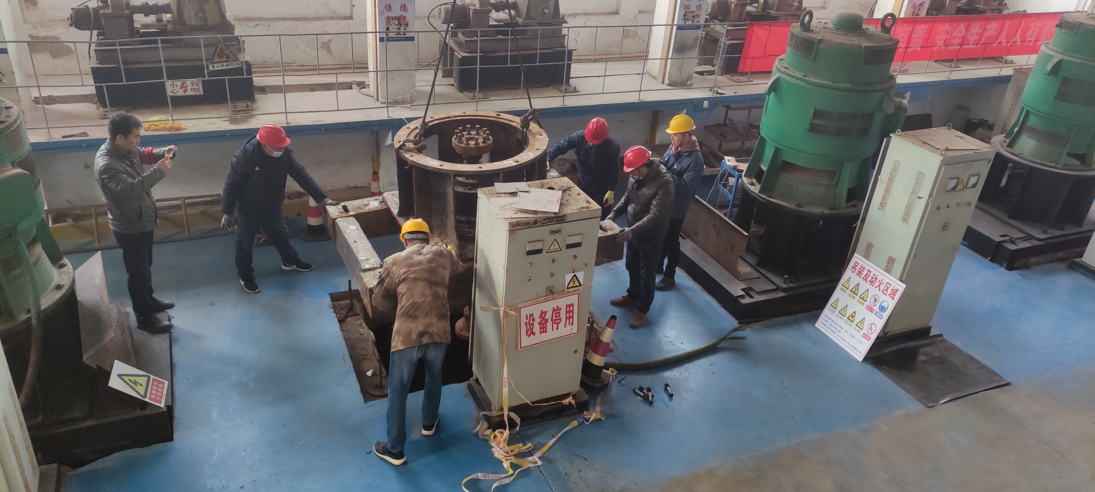 資源管理中心六圩閘揚水站一直承擔海水養殖池塘供水任務。殊不知四號機組長期滿負荷運行,導致四號機泵體出現損壞。當前,正是養殖用水高峰期,為了保證養殖生產正常供水,資源管理中心立即召開會議,部署修泵工作安排,明確分工壓實責任,搶修機泵做到安全監護,確保潮汛來臨之前維修到位,夯實安全生產基礎。(資源管理中心)