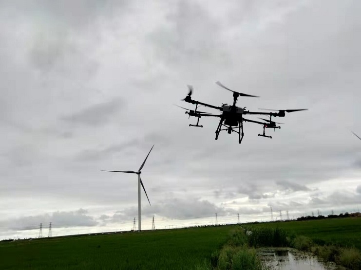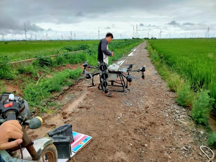 近日,明威公司農(nóng)田水稻進(jìn)入齊穗期,是水稻形成產(chǎn)量的關(guān)鍵時(shí)期,為切實(shí)做好水稻該期病蟲害的防治工作,明威公司組織員工在下雨間隙,用一臺(tái)無(wú)人機(jī),對(duì)二灣種植區(qū)的稻田噴施除蟲農(nóng)藥——齊穗藥,以增強(qiáng)水稻對(duì)病蟲害的防控能力。
