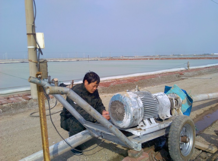 由于公司改革改制的深入,日曬制鹽機(jī)電工全部下放到生產(chǎn)班組進(jìn)行機(jī)電設(shè)備的維護(hù)管理,并負(fù)責(zé)扒鹽過(guò)程中機(jī)械和電氣設(shè)備的維護(hù)使用。雖然身為機(jī)電班長(zhǎng),但是嚴(yán)德軍和大家一樣二話(huà)不說(shuō),帶頭服從大局沉到生產(chǎn)班組,不僅維護(hù)好灘地機(jī)械設(shè)備,及時(shí)處理機(jī)電故障,而且保證扒鹽工作的順利進(jìn)行。同時(shí),嚴(yán)德軍還利用自己的業(yè)務(wù)技術(shù),擔(dān)當(dāng)起日曬制鹽公司新河、埒南兩個(gè)單位的灘地電力技術(shù)指導(dǎo)任務(wù),哪里機(jī)械和電力線(xiàn)路出現(xiàn)疑難問(wèn)題,他總是隨叫隨到,和同志們一起研究解決方案,不影響扒鹽和生產(chǎn)工作的開(kāi)展。新河分公司一個(gè)扒鹽機(jī)泵遙控器失靈無(wú)法操作,維修人員怎么也找不出原因,他通過(guò)對(duì)該遙控器關(guān)鍵線(xiàn)路檢測(cè),很快發(fā)現(xiàn)了一個(gè)小的接線(xiàn)點(diǎn)沒(méi)有連接好,并且迅速解決了問(wèn)題。生產(chǎn)服務(wù)公司鈣液基地一臺(tái)機(jī)泵的熱繼電器出現(xiàn)保護(hù)現(xiàn)象,不能正常工作,如果不及時(shí)維修好就將影響生產(chǎn)班組鈣液的輸送,繼而影響正常礦鹵除硫,他得知情況后二話(huà)不說(shuō)前往對(duì)該機(jī)泵和熱繼電器進(jìn)行仔細(xì)檢查,很快恢復(fù)了該繼電器運(yùn)作,保證了鈣液的正常輸送,為生產(chǎn)班組礦鹵除硫贏得了時(shí)間。