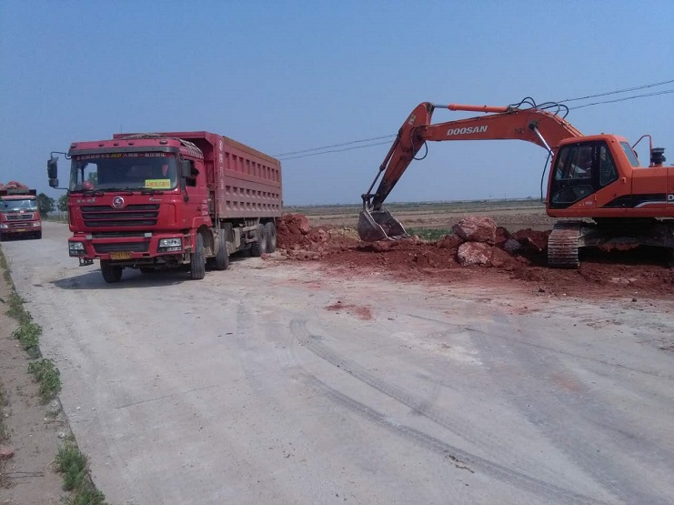 坐落在西旺水產公司農田區域內的其中的8個風力發電機建設項目,經過公司相關人員的協調和建設方人員的共同努力,項目建設的各項工作進展順利。日前,項目建設已正式進入項目施工環節。圖為運載車輛進行鋪建便道施工工程中(西旺宣)
