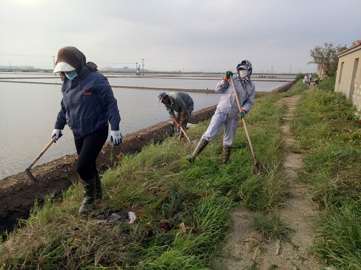 近日,實業(yè)公司海鹽基地,柴門區(qū)三個班組加緊對灘場進行除草行動。夏日雜草叢生,嚴重影響灘容灘貌,且對灘格、溝道等造成制鹵障礙,各班組長帶領(lǐng)工人緊抓時間、人機結(jié)合除草。截止今日,三個班組共除草九千余米。(實業(yè)公司)