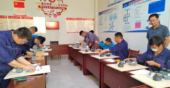 比“巧奪天工”。此次電工比賽內(nèi)容是要求選手在規(guī)定時(shí)間內(nèi)完成配線盤的接線并使電機(jī)正常運(yùn)轉(zhuǎn),最終根據(jù)選手用時(shí)、操作過程及接線情況等進(jìn)行評(píng)判打分。本次比賽增加了安全文明操作的分值,對(duì)選手安全合規(guī)操作提出了更高的要求。