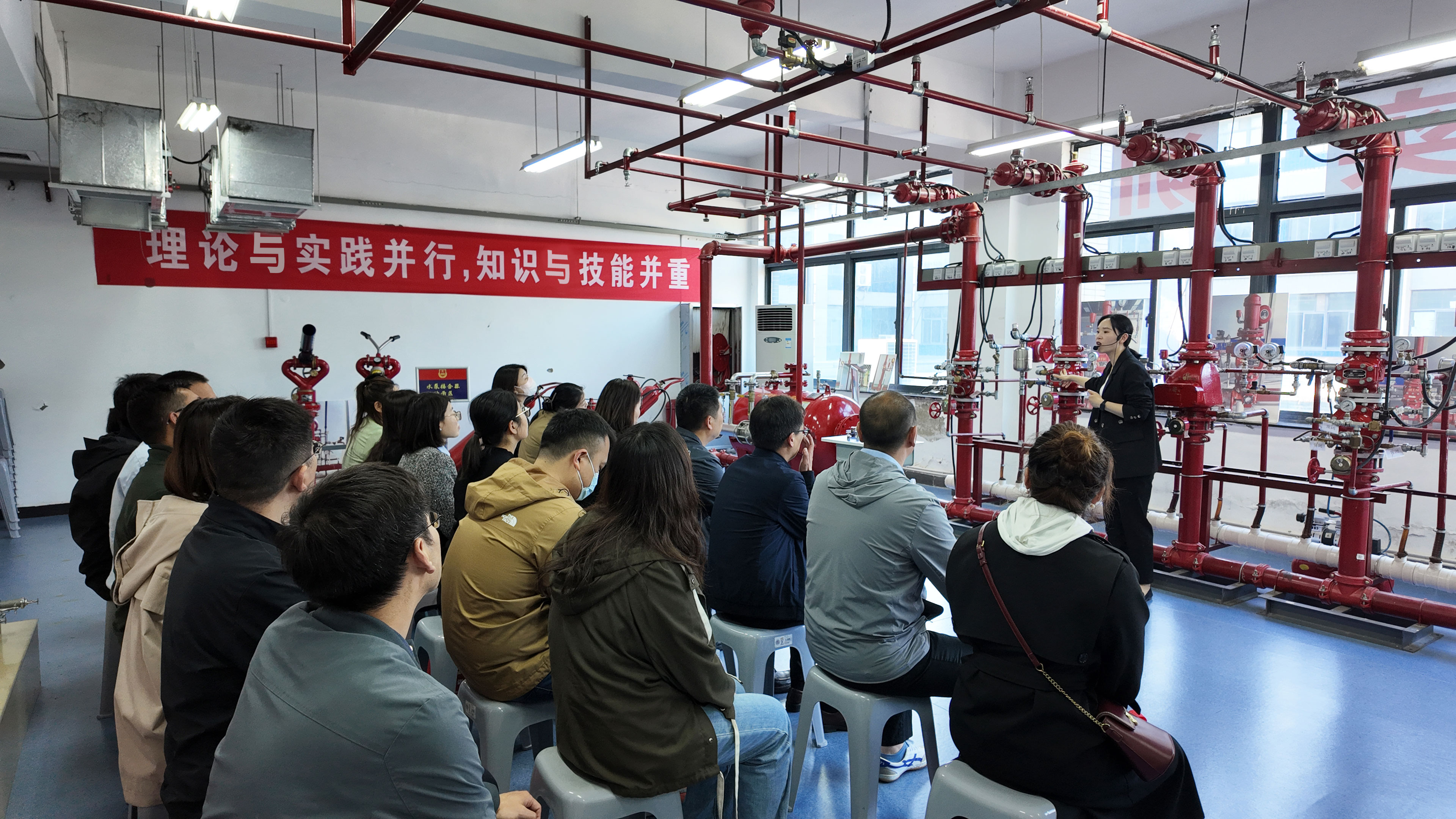 培訓(xùn)中,具有注冊消防工程師資質(zhì)的培訓(xùn)老師運(yùn)用理論授課、實(shí)地講解、多媒體互動等多種教學(xué)方式,使參訓(xùn)職工快速了解并掌握建筑常見消防設(shè)施及消防器材的動作原理和操作技能?!笆谌艘贼~,不如授人以漁?!痹谂嘤?xùn)過程中,老師利用學(xué)校獨(dú)特的現(xiàn)場教學(xué)場景,針對九小場所“三合一”現(xiàn)象、違規(guī)違章動火作業(yè)、常見電氣火災(zāi)隱患等實(shí)際問題進(jìn)行了深入剖析和講解,并重點(diǎn)強(qiáng)調(diào)了日常消防防范管理工作的程序和重點(diǎn),令大家受益匪淺。