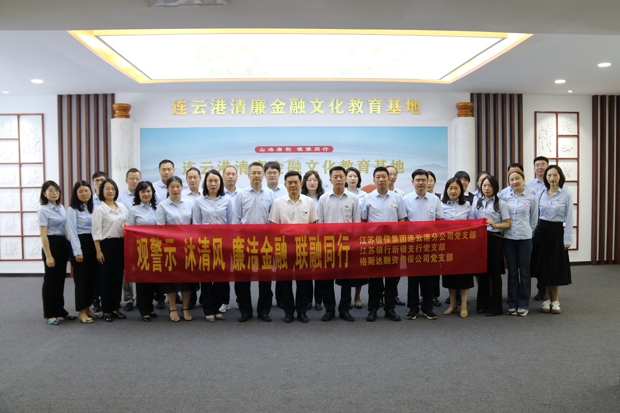 為進(jìn)一步深入推進(jìn)清廉金融文化建設(shè),引導(dǎo)黨員干部牢固樹立廉潔自律意識(shí),做到警鐘長鳴,切實(shí)發(fā)揮“聯(lián)融”黨建品牌的牽引帶動(dòng)作用。近日,我支部與江蘇信保集團(tuán)連云港分公司黨支部、江蘇銀行新銀支行黨支部聯(lián)合組織“觀警示·沐清風(fēng) 廉潔金融·聯(lián)融同行”共建活動(dòng),一同前往清廉金融文化教育基地,接受反腐倡廉教育,感受清廉金融文化洗禮
