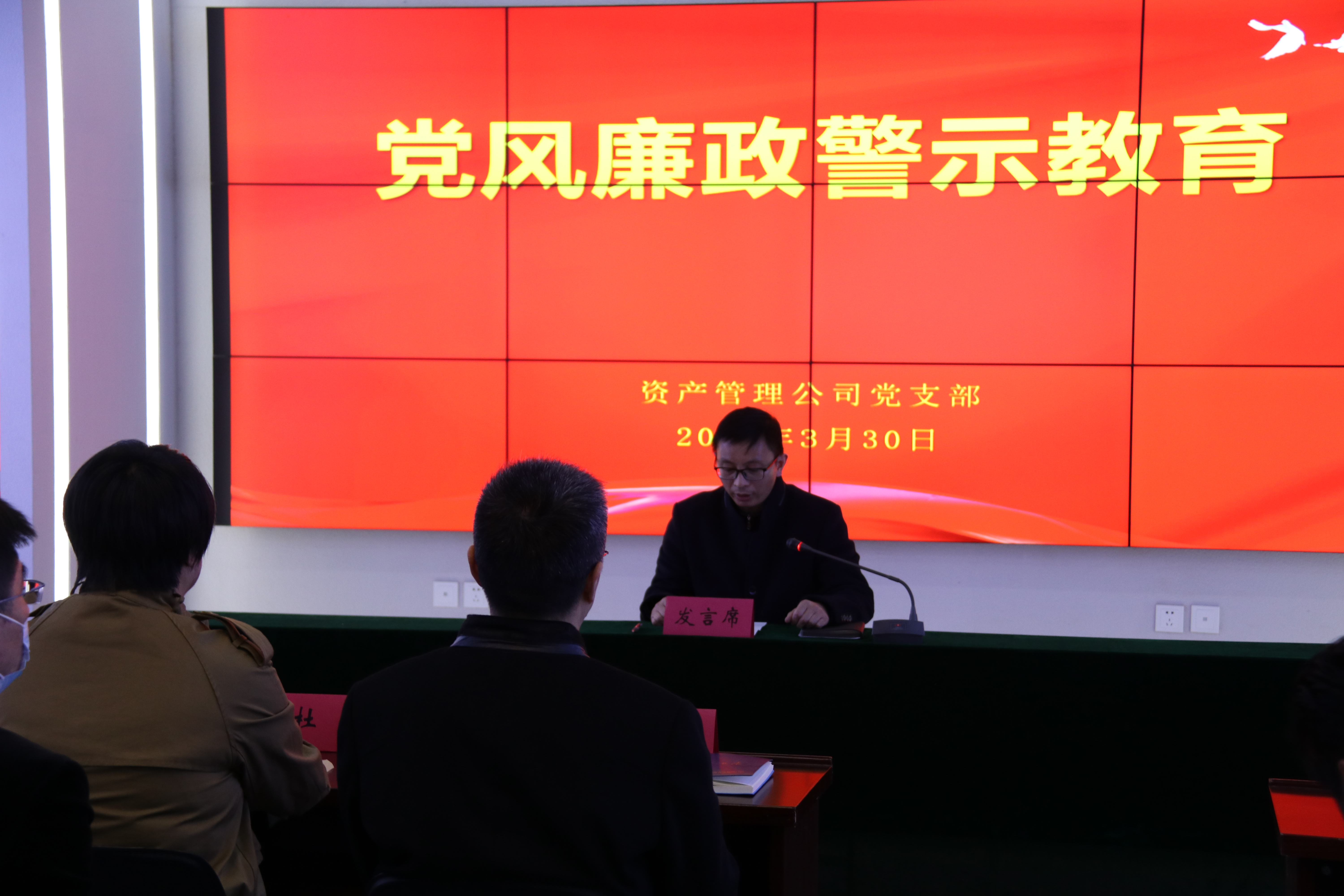 為筑牢員工拒腐防變思想防線,進一步強化其紀律意識、法治意識。近日,資產管理公司黨支部組織全體干部職工在五樓會議室集中觀看廉政警示教育片。