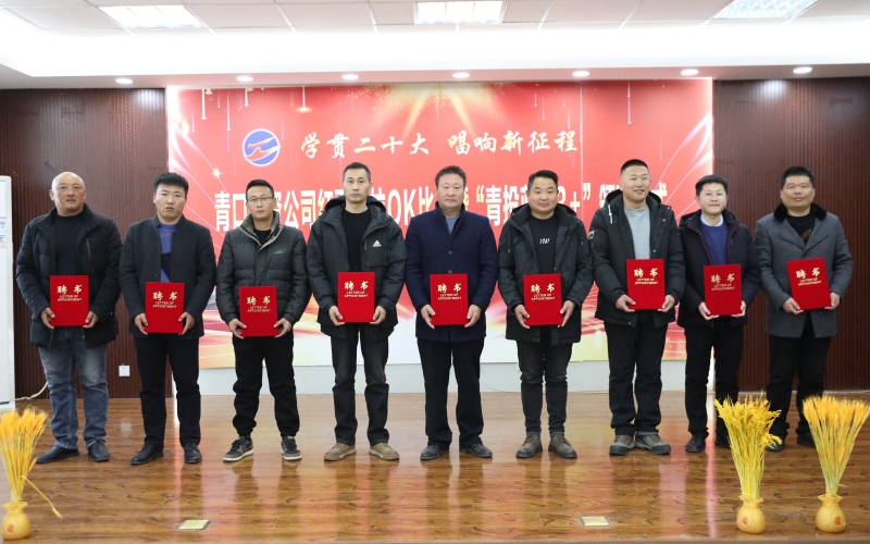 ? ? ? ?近日,青口投資公司開展了2023-2024年度“青投藍領3+”產業工人頒聘儀式,對獲聘的3名班組頭雁、7名首席員工、2名行業技師頒發了聘書。