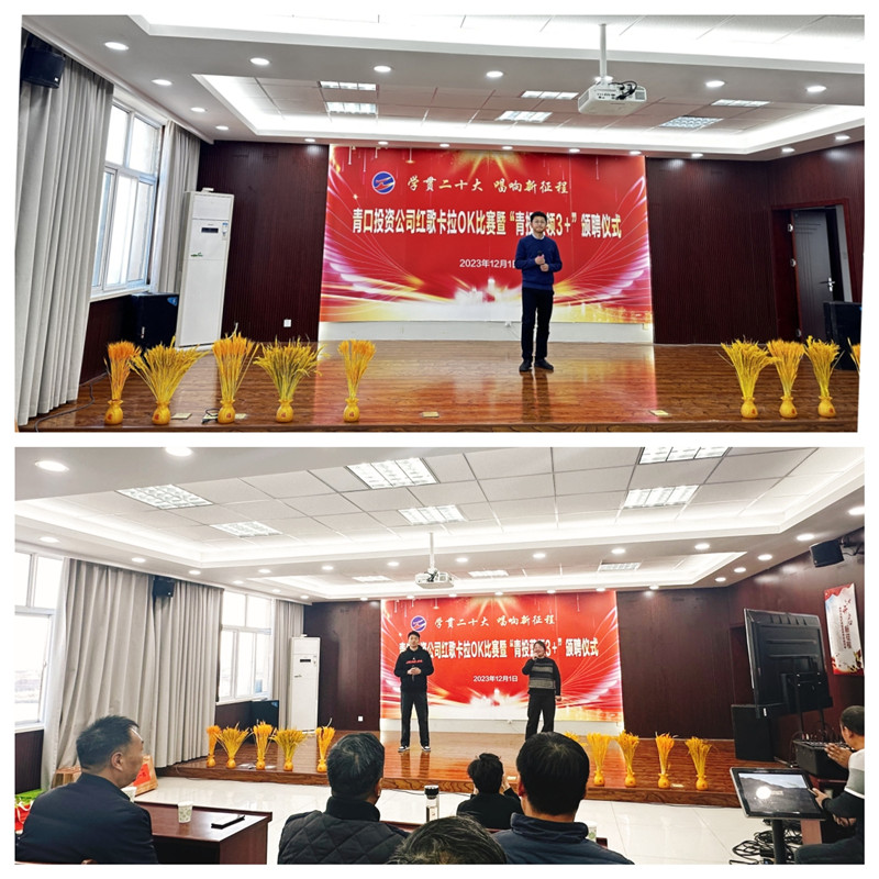 “再唱山歌給黨聽,我把歌兒獻給你,五十六個名族再唱山歌喲,山歌給黨聽”在“學貫二十大 唱響新征程”青口投資公司紅歌卡拉OK比賽暨“青投藍領3+”頒聘儀式中,一首《再唱山歌給黨聽》為青口投資公司第四屆豐收節畫上圓滿句號。