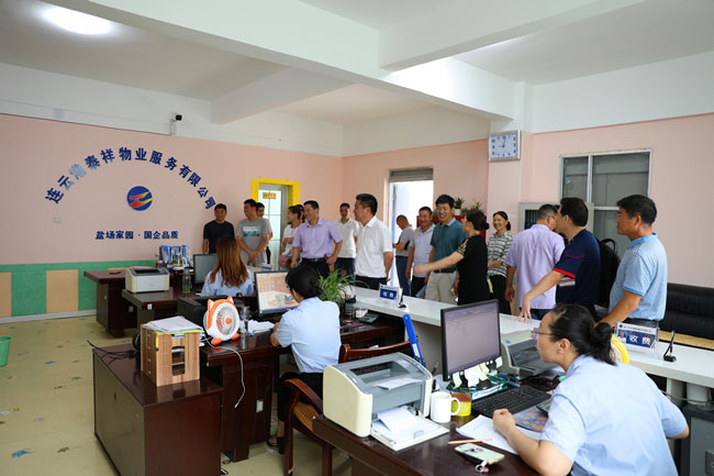 與會人員在泰祥物業服務班組工作人員的指引下,先后參觀了小區微型消防站、地下車庫、物業服務中心等處,聽取了相關情況介紹。