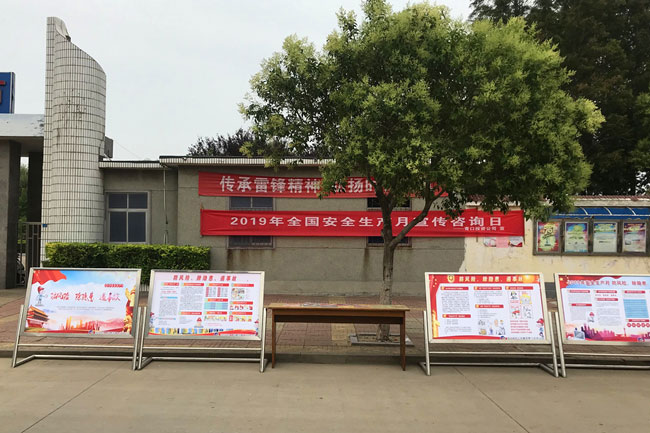 6月1 3 日上午,公司舉行以 “ 防風險、除隱患、遏事故 ”為主題的“安全生產(chǎn)月”宣傳咨詢日活動。活動現(xiàn)場,張貼安全月主題掛圖12幅,展板5塊,發(fā)放《 營造安全環(huán)境,維護社會穩(wěn)定 》、《 應急管理基礎知識 》、《 防風險、除隱患、遏事故 》、《 用電安全十不準 》 、《急救自救與互救知識》 等宣傳單 4 00余張。