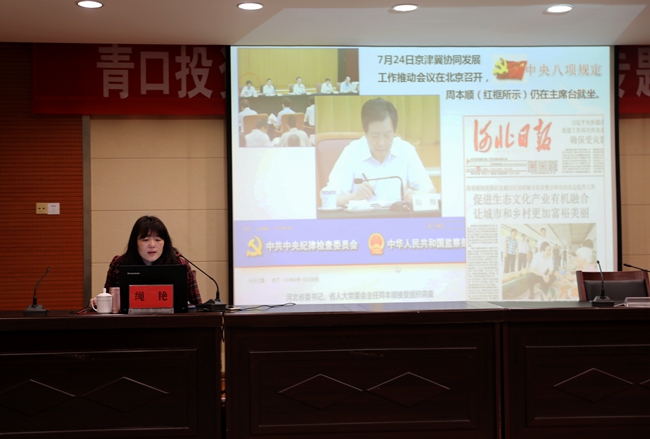 為進一步強化作風建設,增強黨員干部廉潔從業意識, 1 月 11 日上午,青口公司邀請市紀委 黨風政風監督室主任繩艷 作了題為《落實八項規定精神 從嚴從實改進作風》的專題報告,集團紀委書記汪群、公司領導班子成員和全體在崗黨員參加此次講座,講座由黨委書記、董事長胡傳法主持。