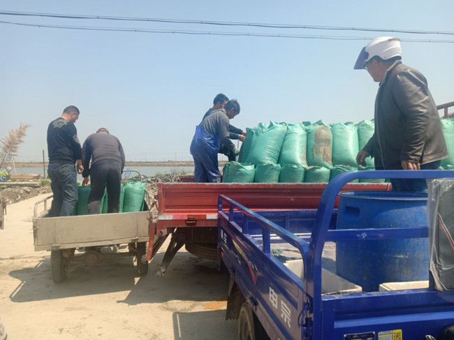 隨著氣溫日漸升高,三洋分場境內養殖戶們紛紛忙碌起來,部分完成了梭子蟹、東方對蝦苗種投放工作的養殖戶池塘,開始投喂鮮活的海沙餌料。據了解,今年海沙單價約2/每斤,較去年同期偏高。(劉洪文)