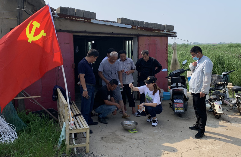 8月2日上午,由三洋分場黨支部組織的養殖互助組組成的“流動診所”,深入養殖一線,對養殖過程中頻發的水質調節、底質改良、疾病診斷等問題認真細致“把脈”,并針對不同病因提供相應“處方”,為養殖戶解困惑、增信心、助生產。(三洋分場黨支部)