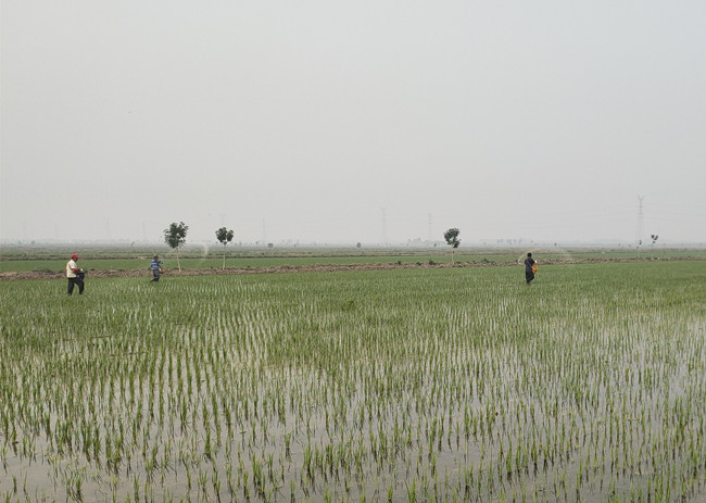 (對秧苗進行撒施分蘗肥)