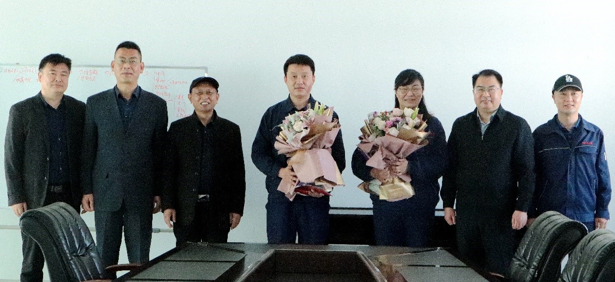 429日上午,集團公司黨委副書記戴鴻鳴到我公司走訪慰問市級勞動模范王爽芳和封安。公司黨支部書記、副董事長鄒德兵,總經理韓立新,工會主席袁忠全程陪同。