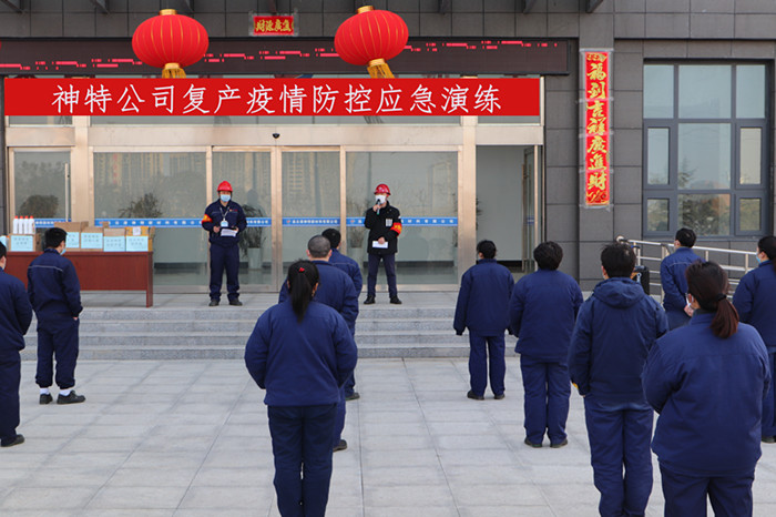 2月26日,神特公司開展復產疫情防控應急演練,進一步檢驗疫情防控成效,提升突發衛生事件響應和應急處置能力。公司疫情防控領導小組全體成員,疫情應急組、后勤保障組、醫療救護組各工作組成員,以及生產一線、機關后勤復產員工50余人參加了演練活動。
