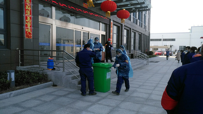乙班班長封安帶領員工前往生產現場進行消殺,對發熱員工可能出入和接觸的工作現場、操作臺、更衣室、原輔材料、工具等進行徹底消毒。生產設備部王勇、王卉啟動調查程序,詢問其他員工,了解發熱員工行動軌跡和密切接觸情況。