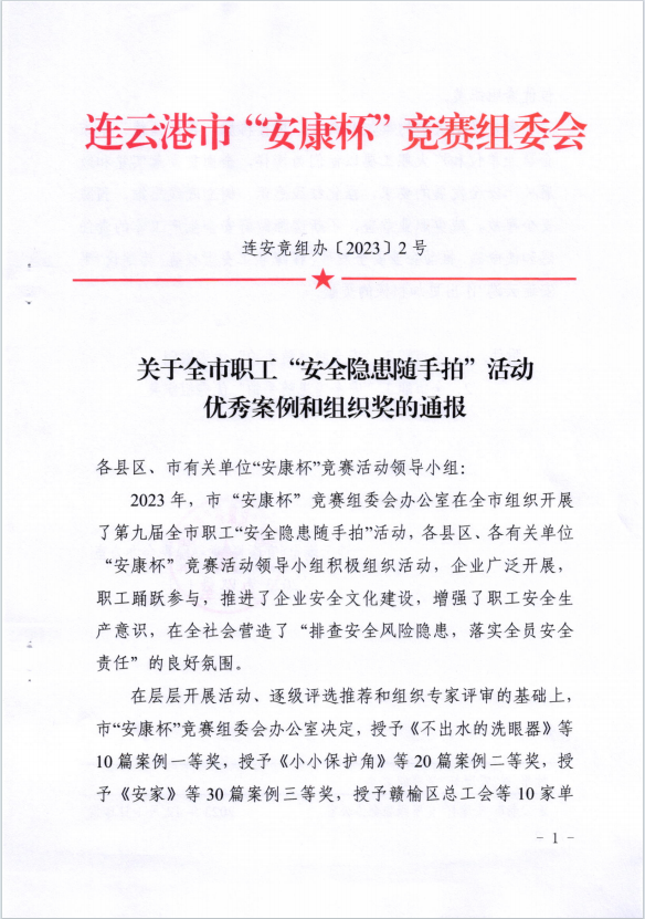 近日,市“安康杯”“安全隱患隨手拍”活動獲獎(jiǎng)作品揭曉,公司員工邱菊參賽作品《不出水的洗眼器》獲得一等獎(jiǎng),陳士亮參賽作品《無用的燃?xì)鈭?bào)警器》獲得二等獎(jiǎng)。(神特宣)