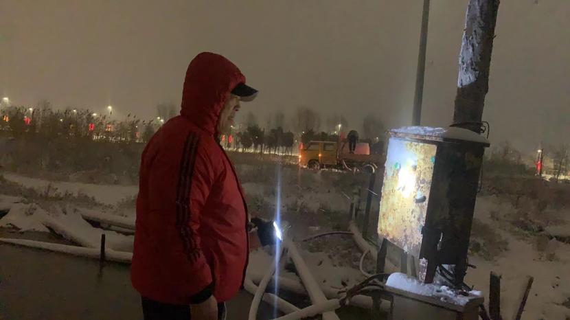 在冰天雪地的先鋒鈣液灘上有一抹亮麗的紅色,他就是鈣液班長程輝,不懼冬日嚴(yán)寒,在風(fēng)雪中堅(jiān)守崗位兩天兩夜,早早的在先鋒灘上等候一輛輛改裝的除雪神器、灑水車;為他們加滿鈣液,奔赴除雪的第一線,他用實(shí)際行動傳遞寒冬里的光與熱。
