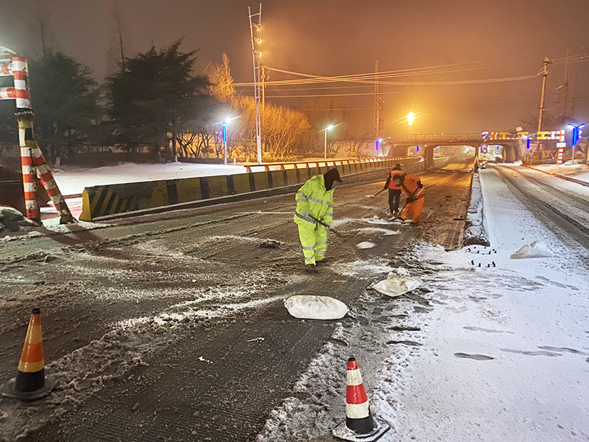 ? ? 此次掃雪除冰行動,采用人機結合方式,調派鏟雪車、裝載機等機械設備,對東方大道、黃海大道、花果山大道、242省道等主要干道人行便道、交叉路口,新海連大廈、火車站東站等重要地段的路面冰雪進行突擊清理;對各條干道的橋面及馬山立交橋、新光路下穿立交等坡度路面鋪灑氯化鈣除雪劑融化冰雪。