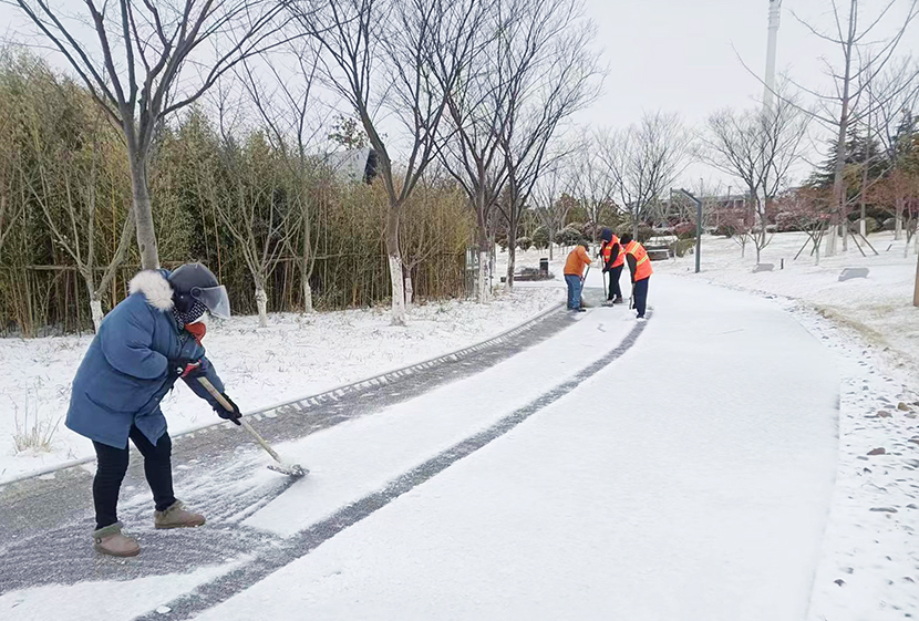 ? ? 機關管理人員全員出動,與東園社區聯動,掃除街邊、道路、小區、商鋪等門前積雪,確保周邊居民出行安全。