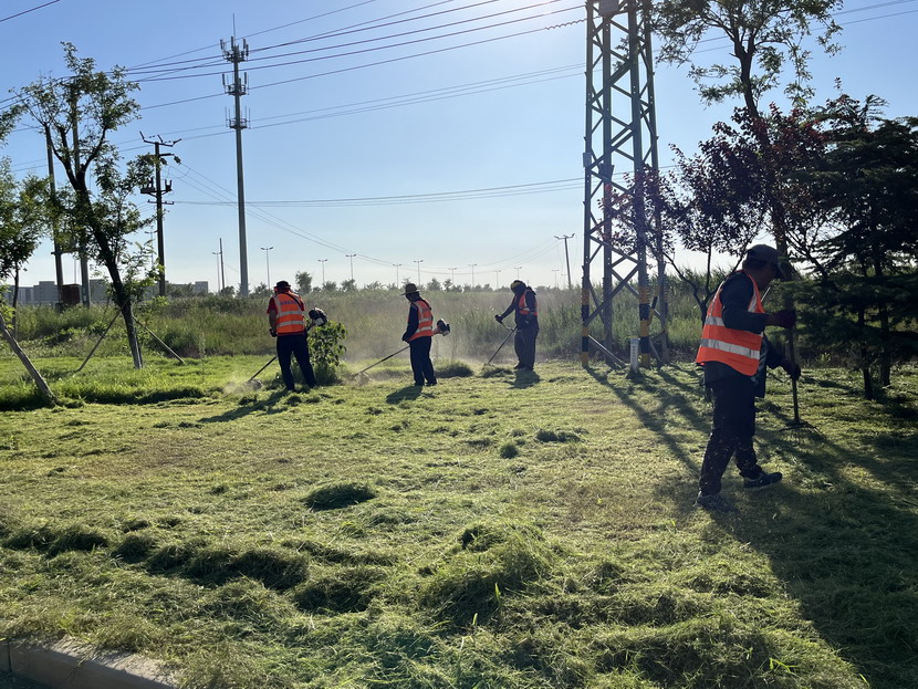 斗酷暑 陽光很烈,他們很美。滾滾熱浪,高溫驗。值爆表,室外溫度38℃,地表溫度飆升到50℃,城市像一個巨大的蒸籠”,空調房里的人們望門止步。但是,有一群與太陽肩并肩不服的鐵子,他們用黝黑皮膚擦亮奮斗的底色。你可以在小區里看到他們頭頂驕陽找路徑、穿網線、做網絡;可以在東方大道上看到他們冒著紫外線的灼烤,忙著栽種草苗、除草澆水;可以在大浦路上看到他們腳踩滾燙瀝青,忙著轉移交通桿;可以在花果山大道上看到他們汗流浹背,背著割灌機忙著打草。一件件浸透汗漬的工裝,一句句樸實無華的話語,一份份汗水淋漓的擔當……翔立每位員工都在發揚“特別能吃苦、特別能戰斗、特別能奉獻”的鐵軍精神,攥緊拳頭,埋頭苦干。