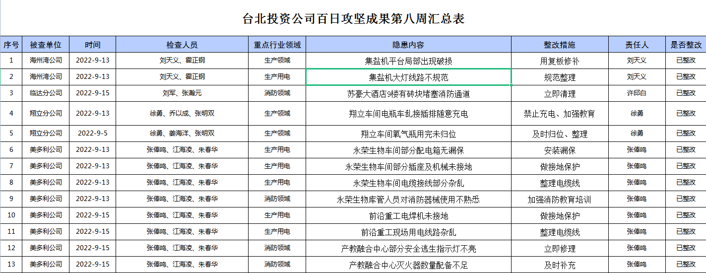 臺北投資公司百日攻堅成果第八周匯總表