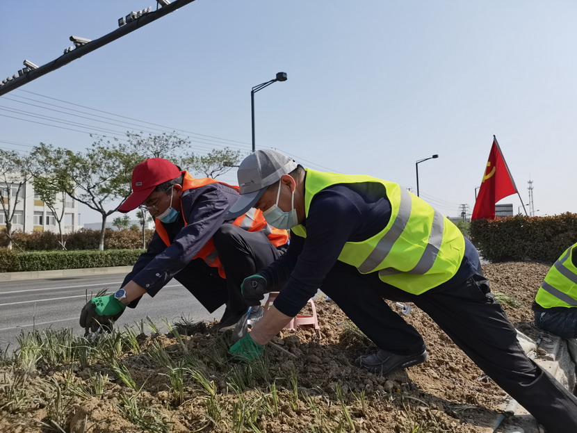 海州灣黨支部組織黨員、職工20余人,從429日開始,全力支援公司綠化工程,黨員們自帶工具、自制工具,發揚一不怕苦、二不怕累的戰斗激情,每天工作超過10個小時,直到帶班組長強制命令還要完成最后一塊責任區才罷手。
