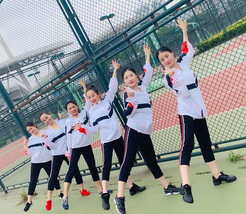 平日里帶領“工投舞蹈隊”訓練的秦英(右三)
