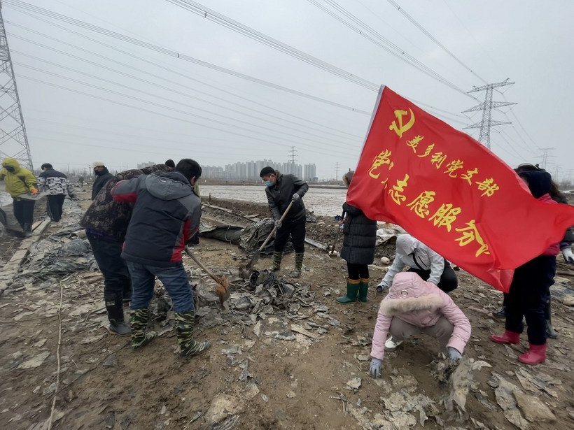 寒風中,志愿者們忙碌在鹽灘上,充分發揚不怕累、不怕臟的精神,對附近區域的垃圾、雜物進行清理。經過一個下午的辛勤勞動,共清理廢棄的塑布、木板等雜物十余車,用行動和汗水,扮靚了鹽場人的家園。