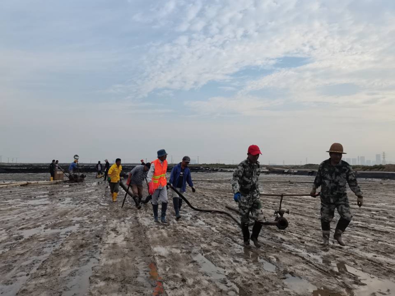 海州灣公司開足馬力,爭分奪秒搶收原鹽