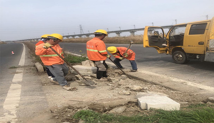 411日,市政分公司接到緊急任務,急需在周五前完成燒香河大橋至242路段約100米道口路緣石修復作業。