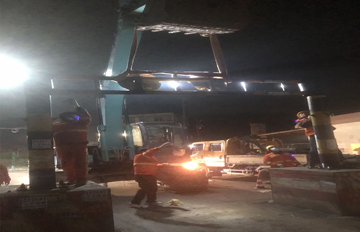 本次施工作業前,該公司提前報備交警部門,科學設計施工方案,合理安排作業時間,確保安全生產工作。施工人員到達現場后,首先維持現場秩序,在東山閘兩端擺放安全警示標志,專人指揮車輛繞行。在挖機的配合下,工作人員有序開展擴寬施工作業,王緒明負責吊掛安全吊帶、指揮限寬墩擴寬,王守濱負責現場限高架焊接,現場管理員單華祥負責指揮擴寬作業,施工現場井序有然,大家各司其職,任勞任怨,發揚鹽場人不怕吃苦精神,經過近3小時的緊張作業,高質高效完成限高架限寬墩擴寬施工作業,道路恢復安全暢通。(李濤)