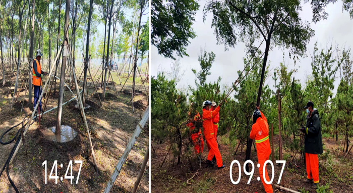 ? ? ? ?工作中,技術(shù)人員李傳武與管養(yǎng)班組長班長田恒亮、協(xié)管員葛承東奮戰(zhàn)在第一線,身先士卒,無懼高溫及蚊蟲叮咬,班組成員在其感染下,步調(diào)一致、步步為營,有序推進(jìn)各項(xiàng)工程進(jìn)度。經(jīng)統(tǒng)計(jì),在張圩港河公園100萬平方米草坪綠化帶上開展各類修剪10次、雜草反復(fù)清理近20次、病蟲害藥物消殺4次、新栽各類苗木600余株、清理枯死樹木300余株、對相關(guān)造型樹進(jìn)行修型。在防汛抗旱維綠工作,采取白天人工澆水搭配晚間滴灌澆水的方法,確保綠綠植健康生長;暴雨后扶正傾倒樹木11余株,積極排澇2次……各項(xiàng)工作數(shù)據(jù)一路“飄紅”。