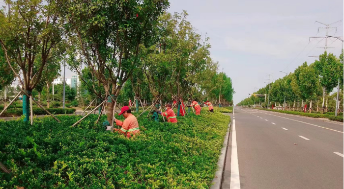 精心部署管養方案。召開班子及綠化班組骨干人員會議,針對目前接手現狀,實事求是研究制定整改提升方案。結合秋季修剪任務,力爭在9月底實施到位。組織黨員突擊隊對祥和路、云港路、仁和路原施工方防寒布進行拆除,序時開展除草專項行動,集中力量加固樹撐。截止目前拆除法桐、白蠟、欒樹、櫸樹、女貞等3200余株防寒布加固300余株樹木;清除雜草2萬余平方。針對前期氣溫高、相對干旱天時,加強綠植澆灌補水及病蟲害工作。利用一個星期立足早晚搶進度,對重點道路綠植澆灌補水。特別是后補植的色帶、苗木增加澆水次數,確保澆透,保證苗木成活率。
